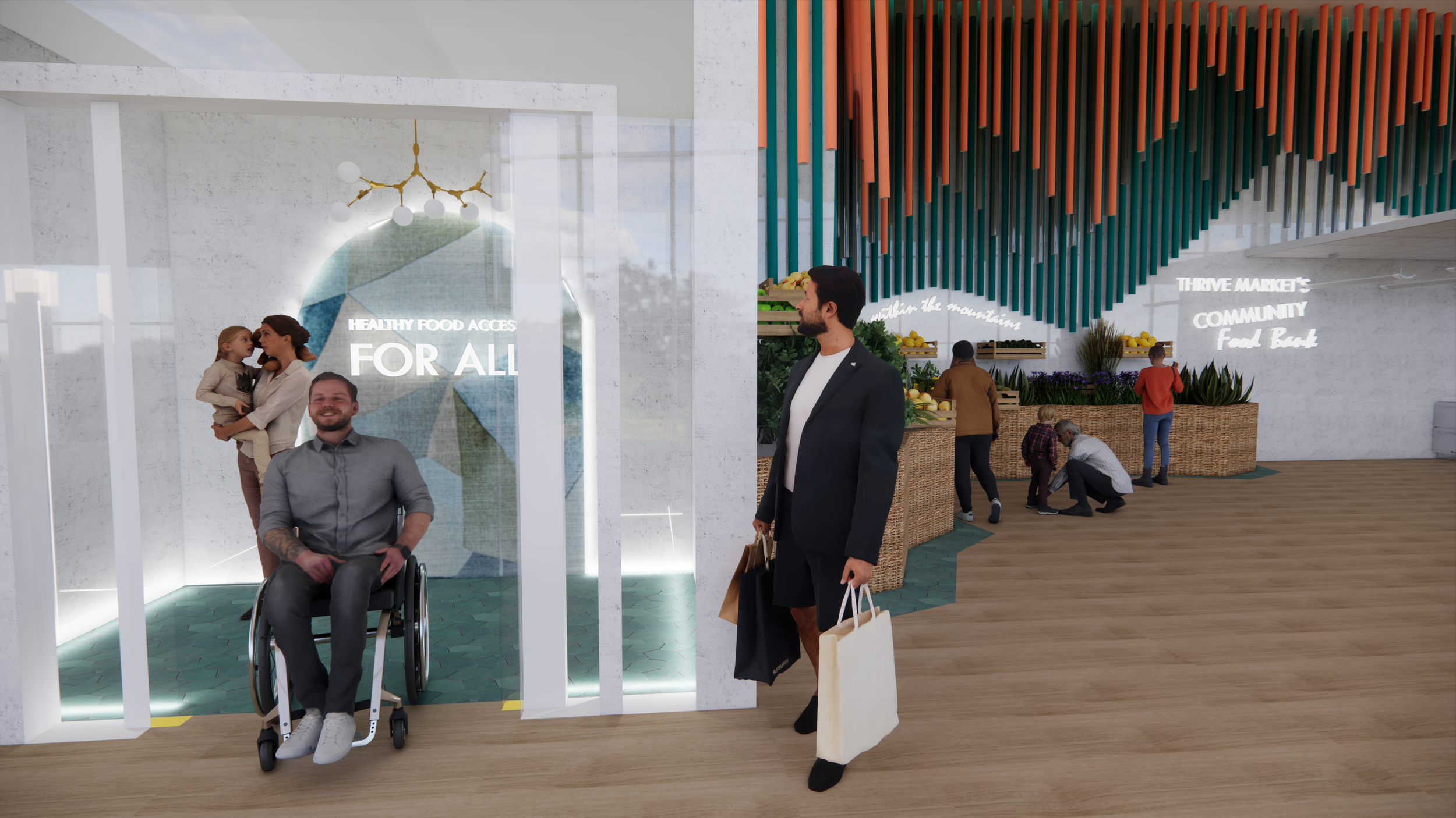 Interactive, tactile installations encourage guest engagement, highlighting Thrive Market’s commitment to personalized experiences. Each zone of the space is thoughtfully curated to offer immersive interactions with Thrive Market's mission, emphasizing wellness and community in a way that reflects local heritage.